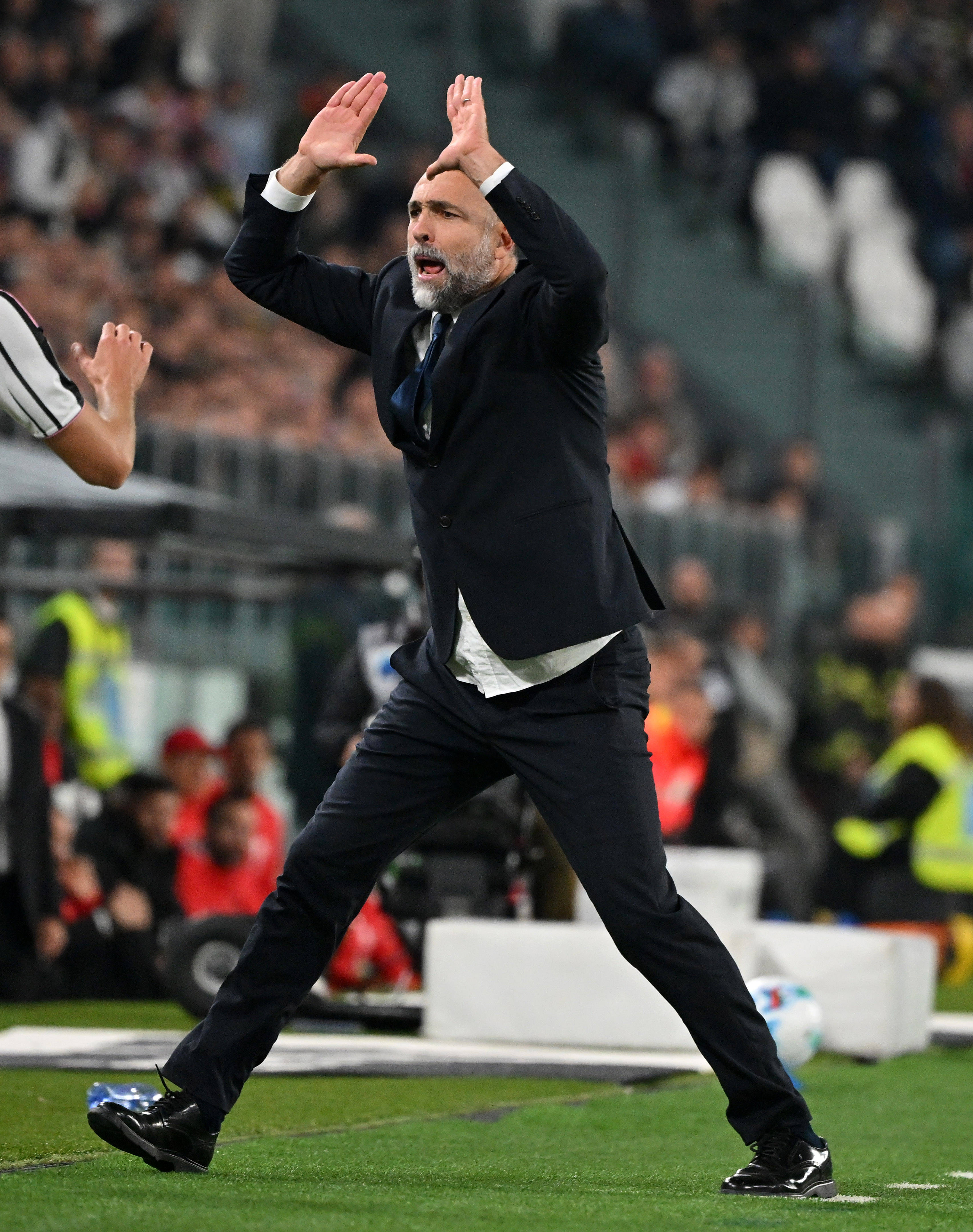 10月5日,尤文图斯队主教练图多尔在场边指挥。 新华社发(阿尔贝托·林格利亚摄)
