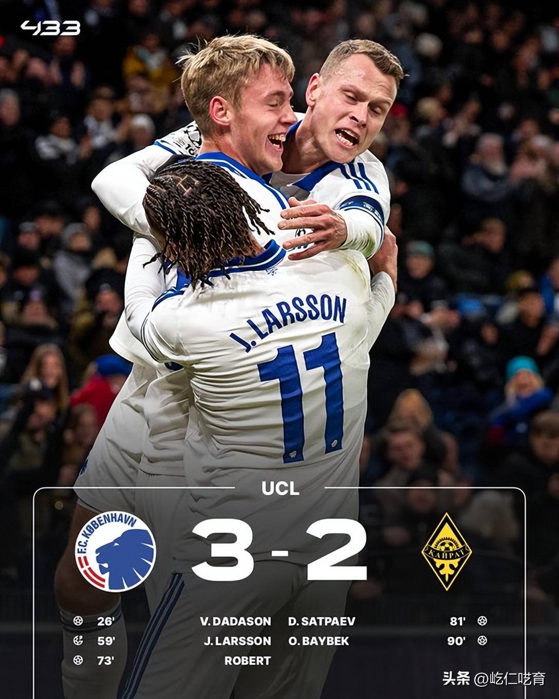 但好在,哥本哈根还是凭借前73分钟所建立的巨大优势,最终在主场有惊无险的以3-2取胜欧冠新军拿到了本场的胜利。