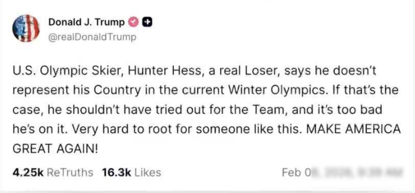 米兰,米兰体育,米兰体育官网,米兰体育app,米兰体育网页版,米兰真人,米兰捕鱼,米兰体育平台,米兰体育app下载,米兰官网,米兰app,米兰网页版,米兰体育APP下载,米兰百家乐,米兰体育注册2月6日米兰冬奥会开幕式刚结束,美国自由式滑雪运动员亨特·赫斯在记者会上说,他披着国旗但不代表认同美国当前的全部状况,这话只是表达个人感受,没有攻击性,可两天后特朗普在自己的社交平台“Truth Social”上回应,不认同美国就别进国家队,他还质疑这位运动员的参赛资格。