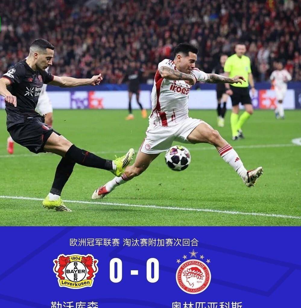首回合客场2-0取胜的勒沃库森,此役采取稳健的防守反击战术,主场作战的奥林匹亚科斯全力进攻却始终无法破门。